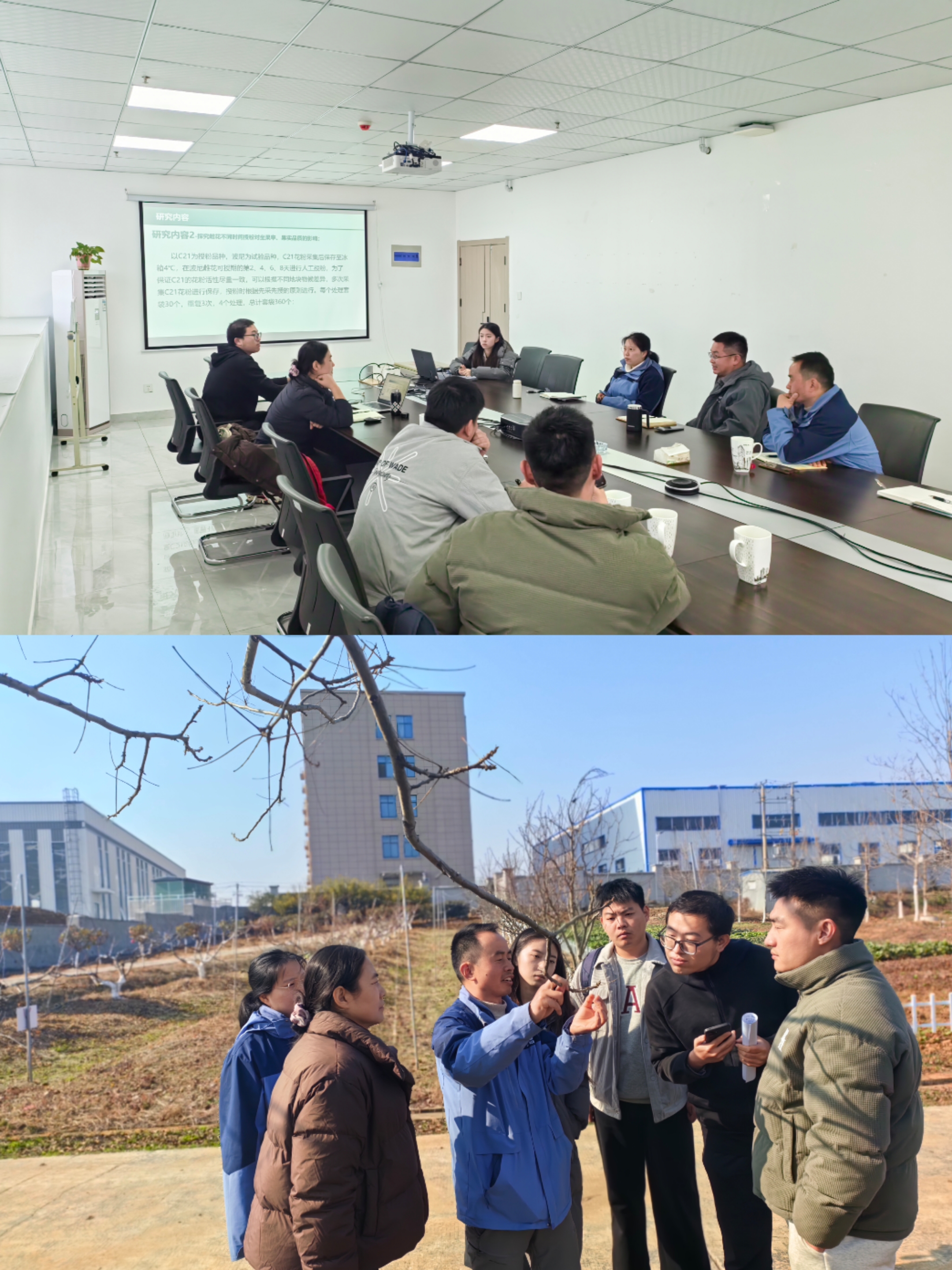当天召开的攻关推进会,是工作站落地后校企协同攻关的重要举措。会议以薄壳山核桃生产痛点为导向,聚焦3名联合培养研究生科研选题,学生汇报后校企深入研讨。何的明董事长强调,工作站核心价值是“务实赋能”,希望学生融入生产一线,以解决实际问题为导向,让科研成果落地赋能公司技术升级。